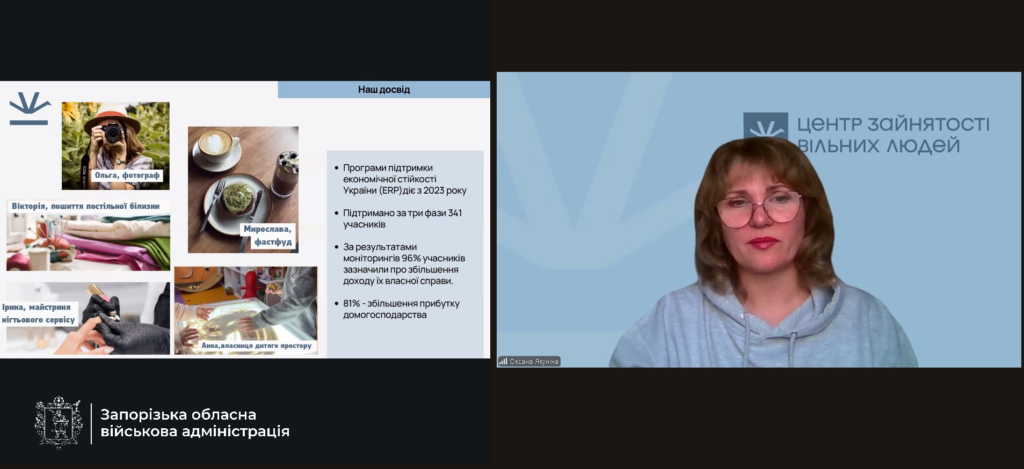 Перший напрям програми BLOOM – індивідуальна грошова допомога для підтримки ініціатив мікробізнесу. Менеджерка з комунікацій ГО «Центр зайнятості вільних людей» Оксана Якуніна докладно розповіла про умови отримання мікрогрантів. В Запорізькій області програма розповсюджується на агросферу та інші види бізнесу.