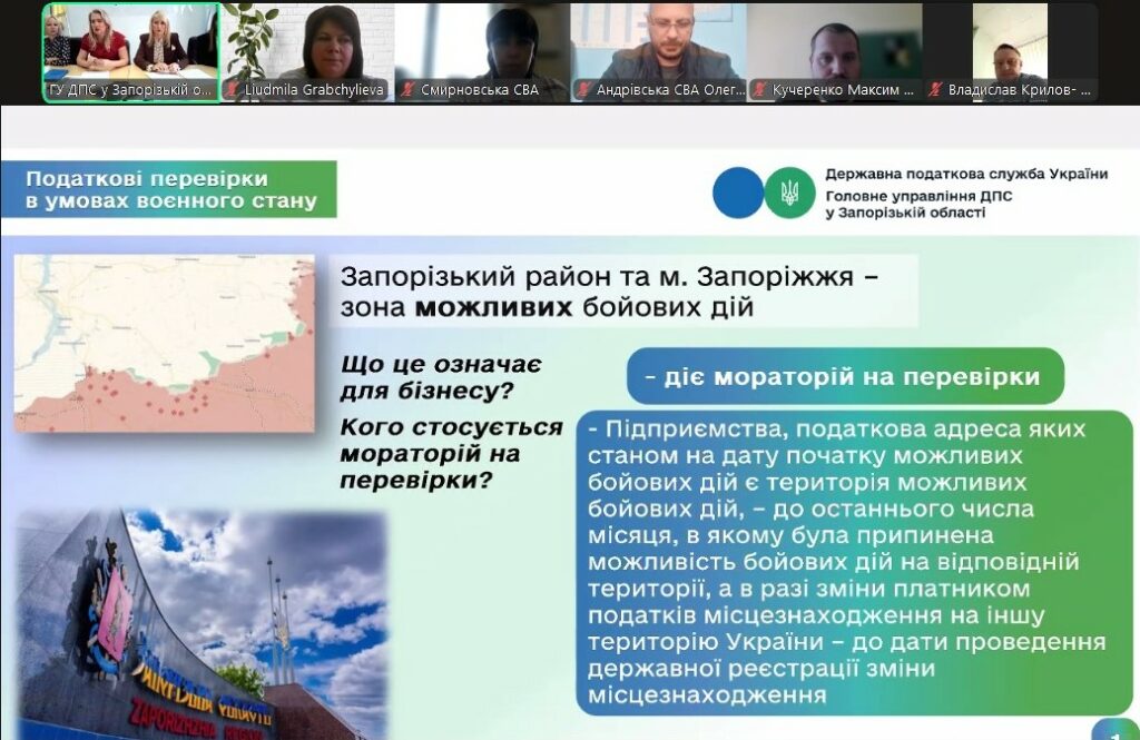 Начальниця управління з питань виявлення та опрацювання податкових ризиків ГУ ДПС у Запорізькій області Вікторія Кулініч поінформувала підприємців про зміни у порядку зупинення реєстрації податкових накладних. А начальниця управління правового забезпечення ГУ ДПС у Запорізькій області Ольга Лисенко – про актуальні новації податкового законодавства.