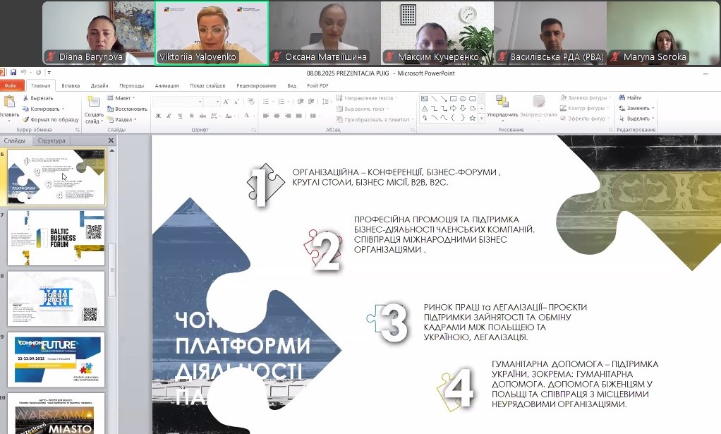 Учасники заходу дізналися, як запорізьким підприємцям налагодити зв’язки з польським бізнесом, які інструменти партнерства вже доступні та як взаємодія з місцевими органами влади може допомогти у відновленні економіки регіону. Спікерки поділилися досвідом реалізації спільних проєктів, розповіли про підтримку українців у Польщі та запросили бізнес до участі у майбутніх міжнародних подіях.