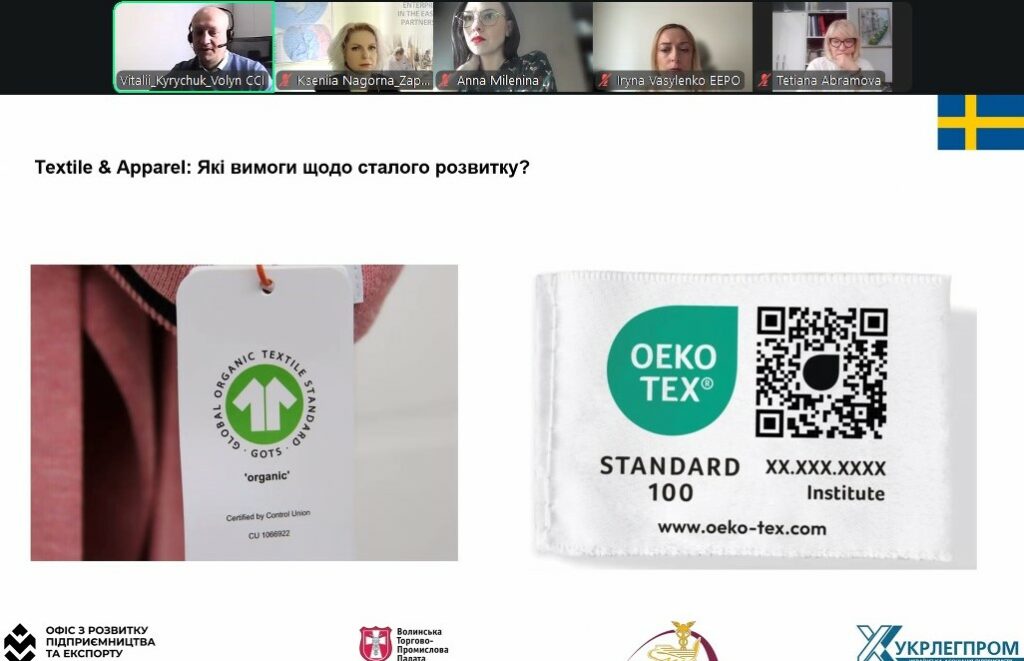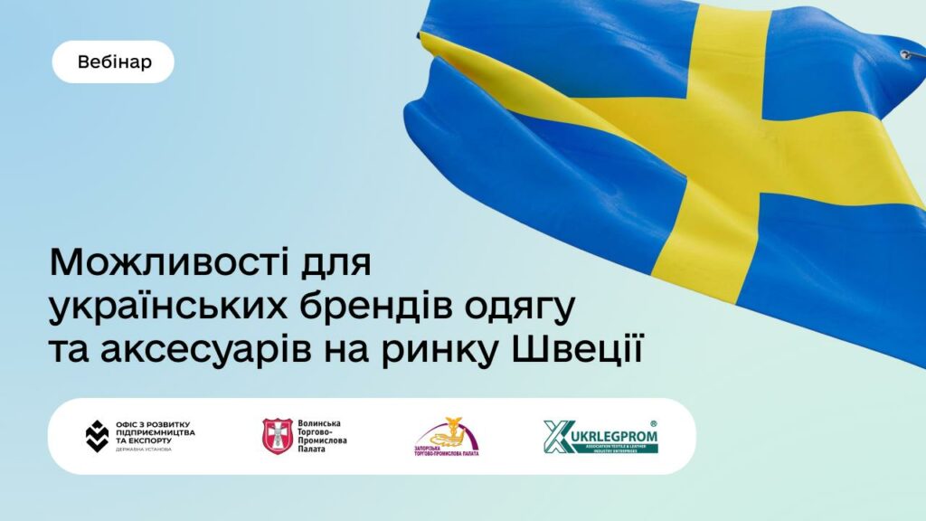 У межах вебінару експерти представили огляд ринку легкої промисловості Швеції, детально зупинилися на вимогах до текстильної продукції на шведському ринку, а також презентували програму виходу на ринок Швеції Export to Sweden для українських брендів одягу та аксесуарів.